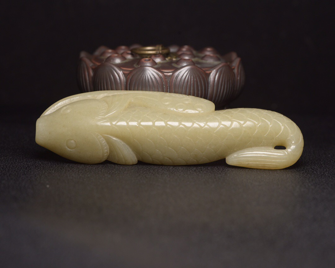 - 『館蔵珍品 和田玉製 細密彫 連年有餘 置物 賞物』稀少珍蔵品 古賞物 貴重物品 収蔵品 中国古美術 時代物 古董品