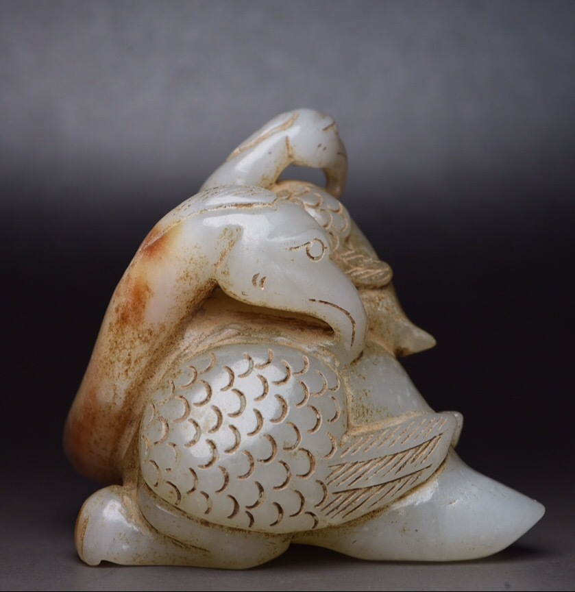 - 『館蔵珍品 和田玉製 細密彫 母子鳥 置物 賞物』稀少珍蔵品 古賞物 貴重物品 収蔵品 中国古美術 時代物 古董品