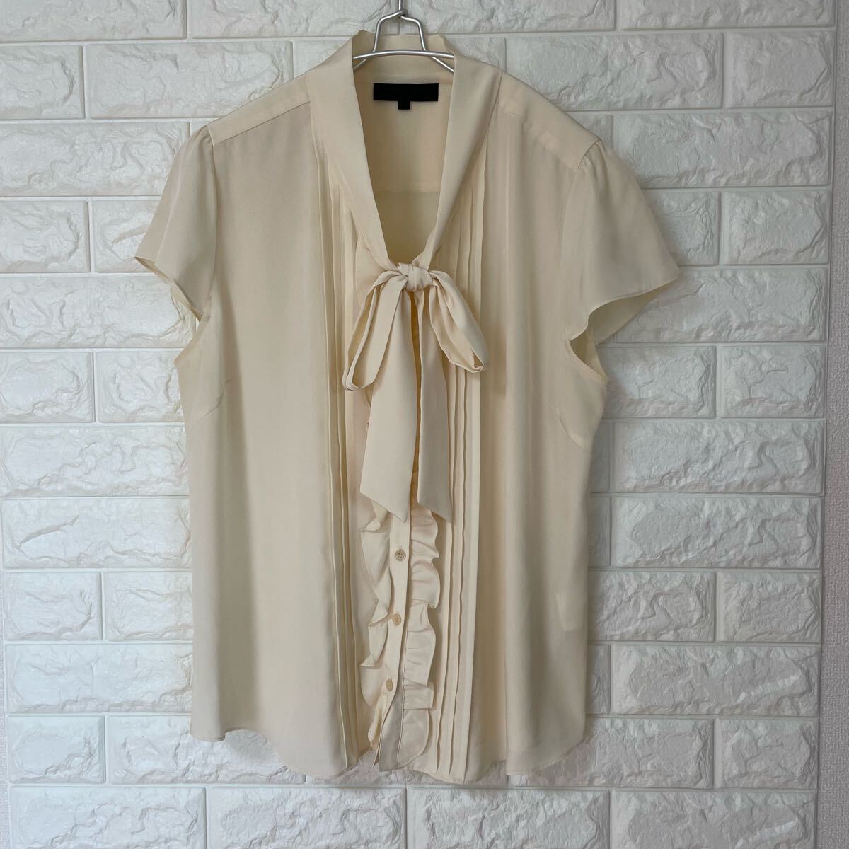 - UNTITLED アイボリー リボン襟 フリルボタン 半袖ブラウス サイズ44