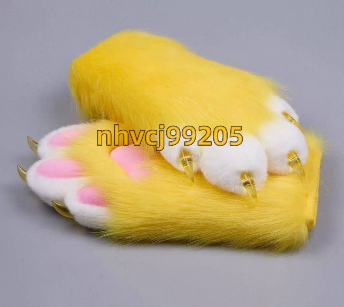 - 着ぐるみ ケモノ 手袋 黄色 フリーサイズ ケモノ脚 ファースーツ ケモノ fursuit ぬいぐるみ コスプレ コスチューム kigurumi