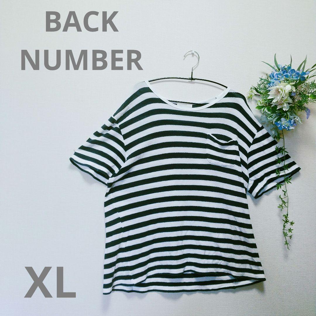 > ♪BACK NUMBER ボーダー Tシャツ USED 着心地 綿100% コットン XL マリン ホワイト ネイビー メンズ ゆったり 夏服 0010