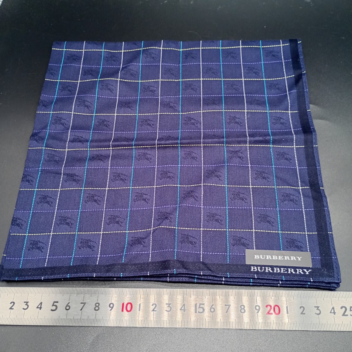 - BURBERRY バーバリー ハンカチ ネイビー 総ホースマーク織 no.3020