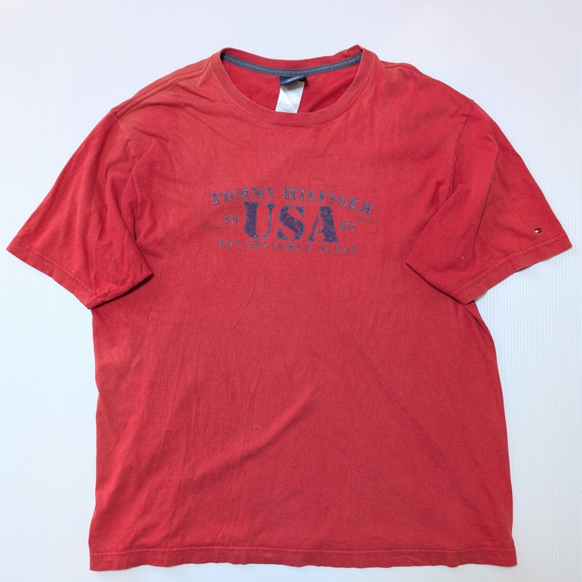 > TOMMY FILFIGER Tシャツ メキシコ製 古着 色褪せ 穴あきあり L(〜XL) a037