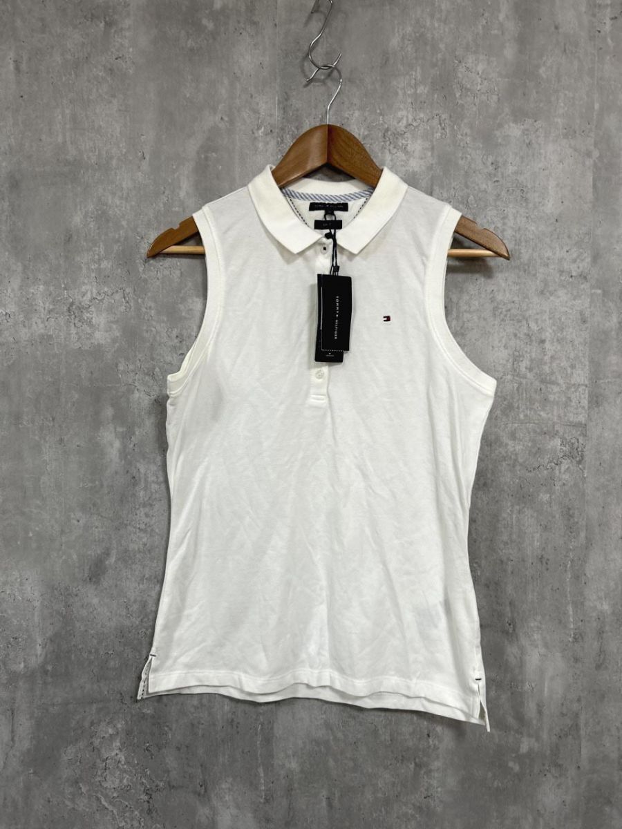 - 美品 TOMMY HILFIGER トミーヒルフィガー ノースリーブ ポロシャツ sizeM/白 ■◆ レディース