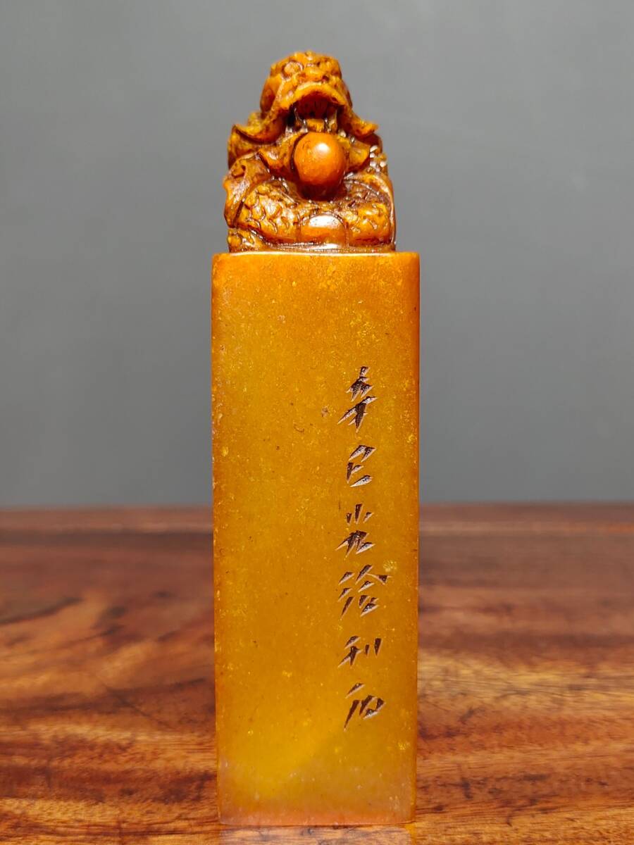 > 『館蔵珍品 寿山石 田黄石 細密彫 瑞龍戲珠印章 印章 印鑒』文房具 書道品 貴重物品 収蔵品 中国古美術 時代物 古董品