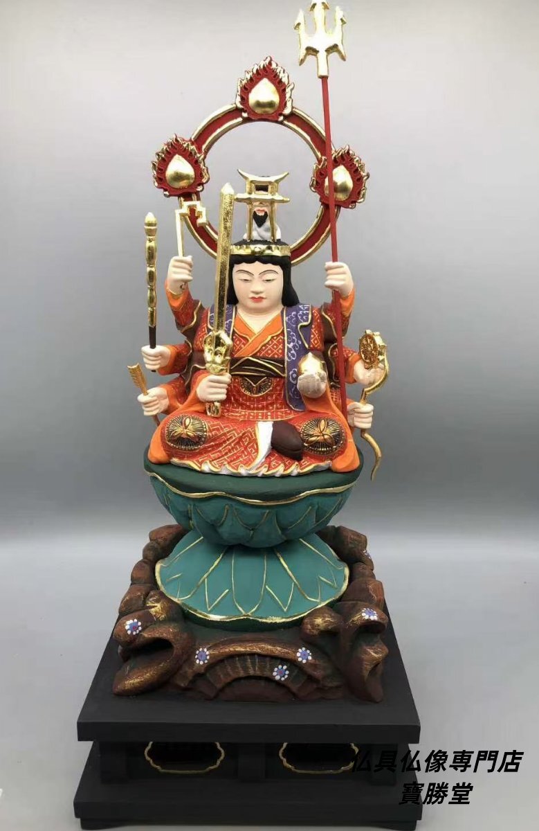 - 木彫仏像 仏教美術 精密細工 仏師で仕上げ品 総檜材 彩色 彩繪 切金 八臂弁財天 高さ29cm【送料無料】【仏具仏像専門店寶勝堂】