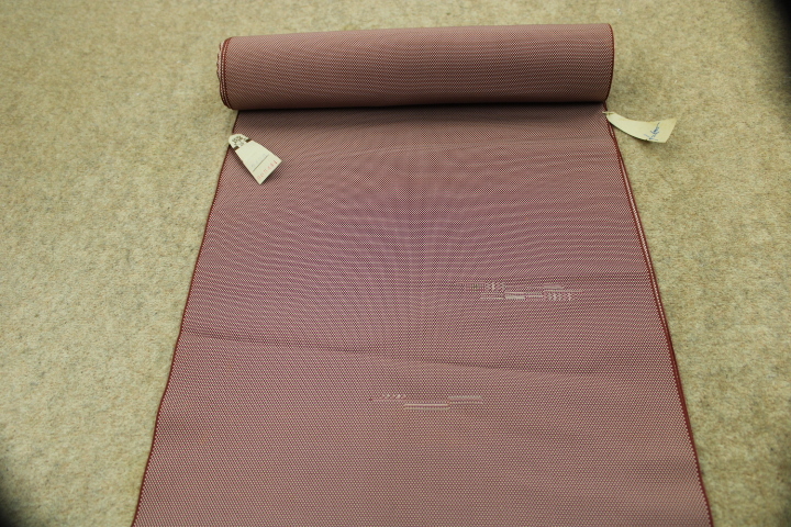 - きもの今昔8634 着物尺反物 西陣織正絹御召 エンジ色白砂地幾何図案飛び柄