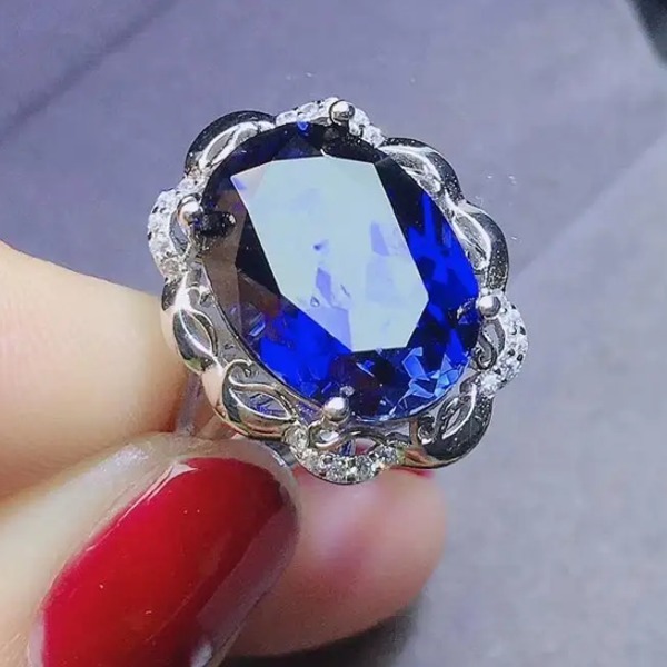 天然サファイアリング、10*14mm、象眼細工、高貴なリング、925スターリングシルバー