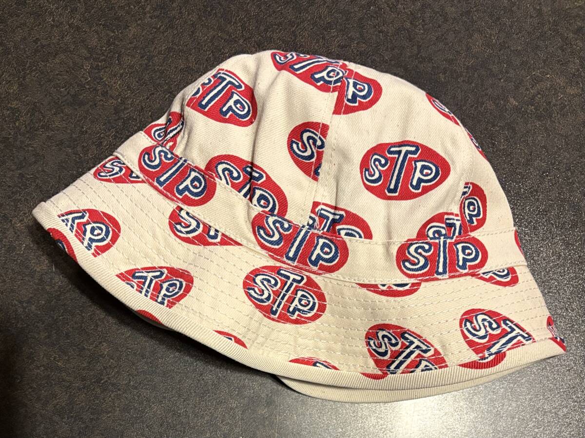 - 希少L-USA製デッドストック70sビンテージSTP総柄ハットLARGEコットン生成り白バケット帽バケハ米国製/米製US製アメリカ製70年代1970sデッド