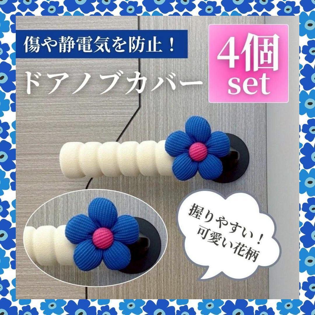 - ドアノブカバー 4本 ドアハンドル 衝突 静電気防止 グリップ ブルー