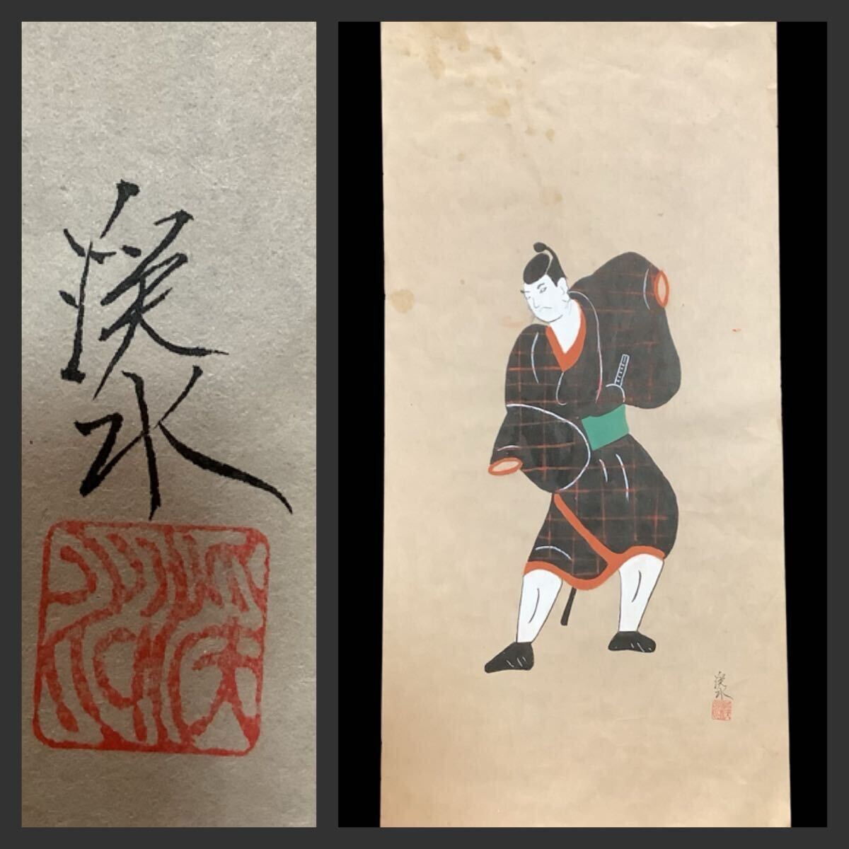 > 【模写】捲りJun775[渓水作 雁金文七(五人男)]彩色紙本 書いたもの/日本画 大津絵 民画 民俗絵画 風刺画 戯画