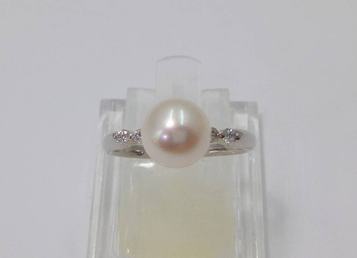 - Pt900 プラチナ 4.1g アコヤ真珠 8mm 8.0mm×8.1mm ダイヤ 0.10ct リング 13号