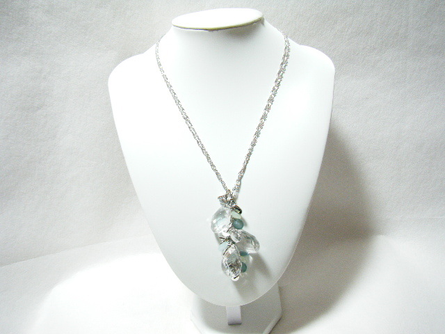 - ★ネックレス クリア 緑 グリーン しずく型 樹脂 シルバーカラー【CF25】