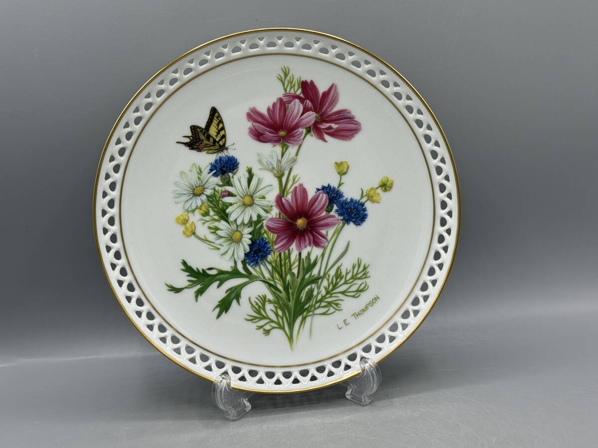 > レア 限定品 ビングオーグレンダール B&G 9月 透かし彫り 花 ピアス ガーデン 皿 デンマーク ロイヤルコペンハーゲン (#-16)