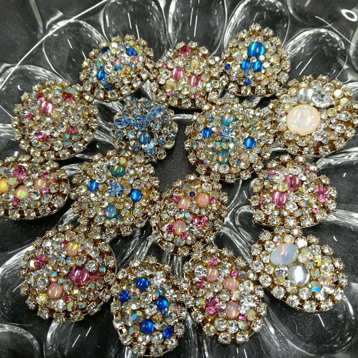 > ☆未使用 約15個 大量 SWAROVSKI スワロフスキー 円 パーツ ハート ラウンド 25mmなど クリスタル× ピンク 青 水色 ヴィンテージ B-98