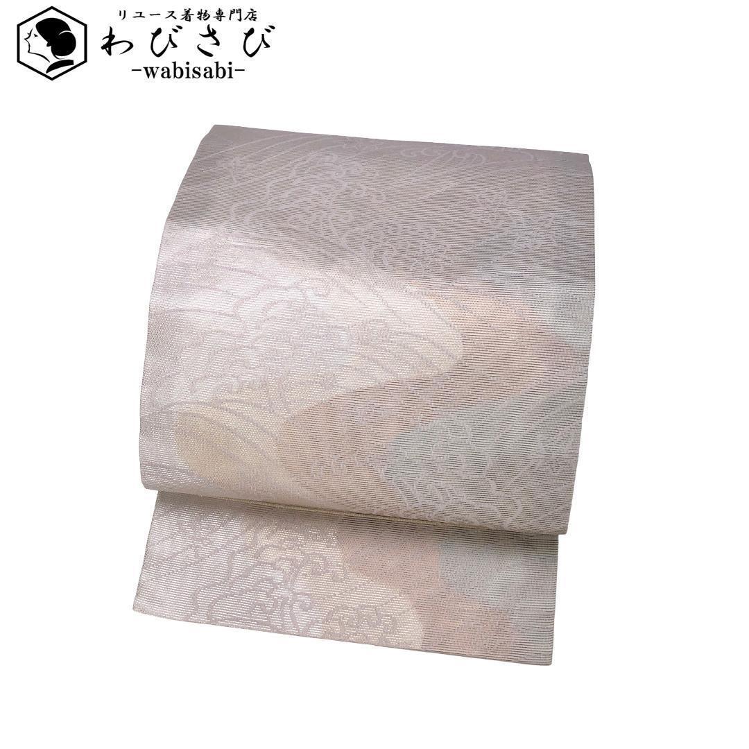> 夏帯 名古屋帯 紗 波模様 桜色 O-5208 着物 きもの kimono 和服 和装 中古 リサイクル着物 【送料無料】