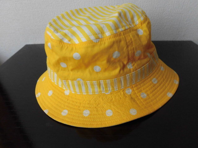 - ●モードお帽子/Darby/日本製/黄色&白/水玉&ストライプ/ ポップなクロッシュ帽/サイズM