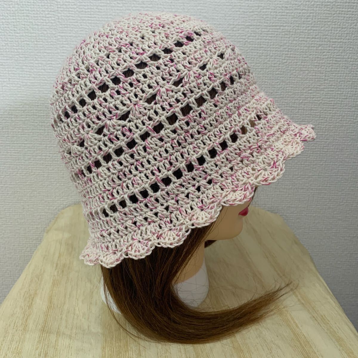 - 【a111】コットン100% レース編み フリル いちごミルク バケットハット