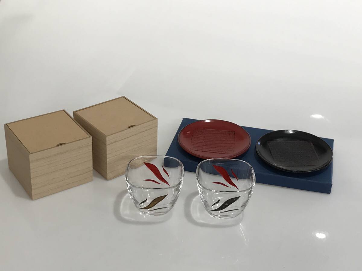 - HG8158 桜井漆器 花クリスタル 豆小鉢 2個 ガラス製 菓子皿 2枚 木製 セットで 和食器