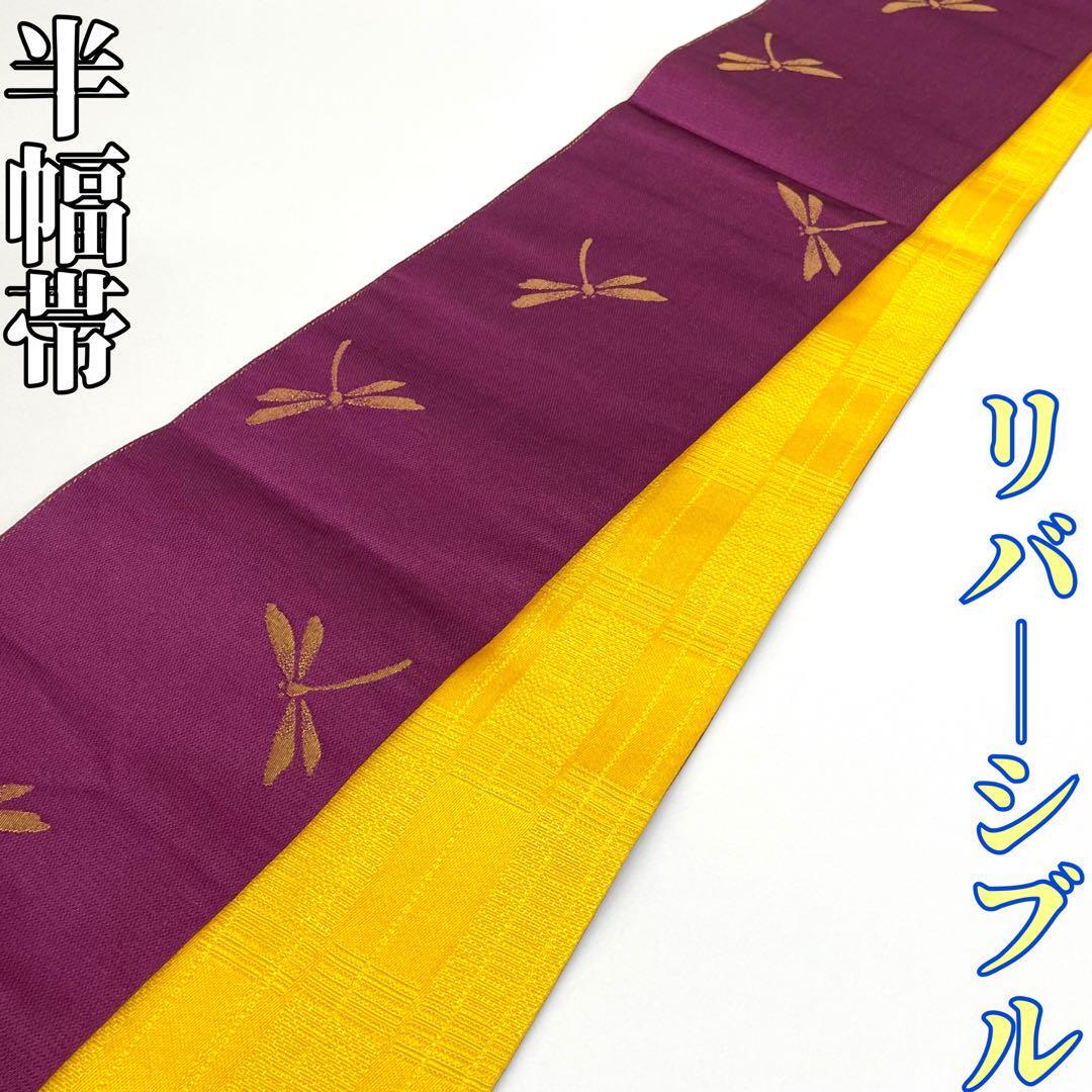 > 【着物と帯 時流】O25761◆ポリエステル 半幅帯◆リバーシブル とんぼ 美品
