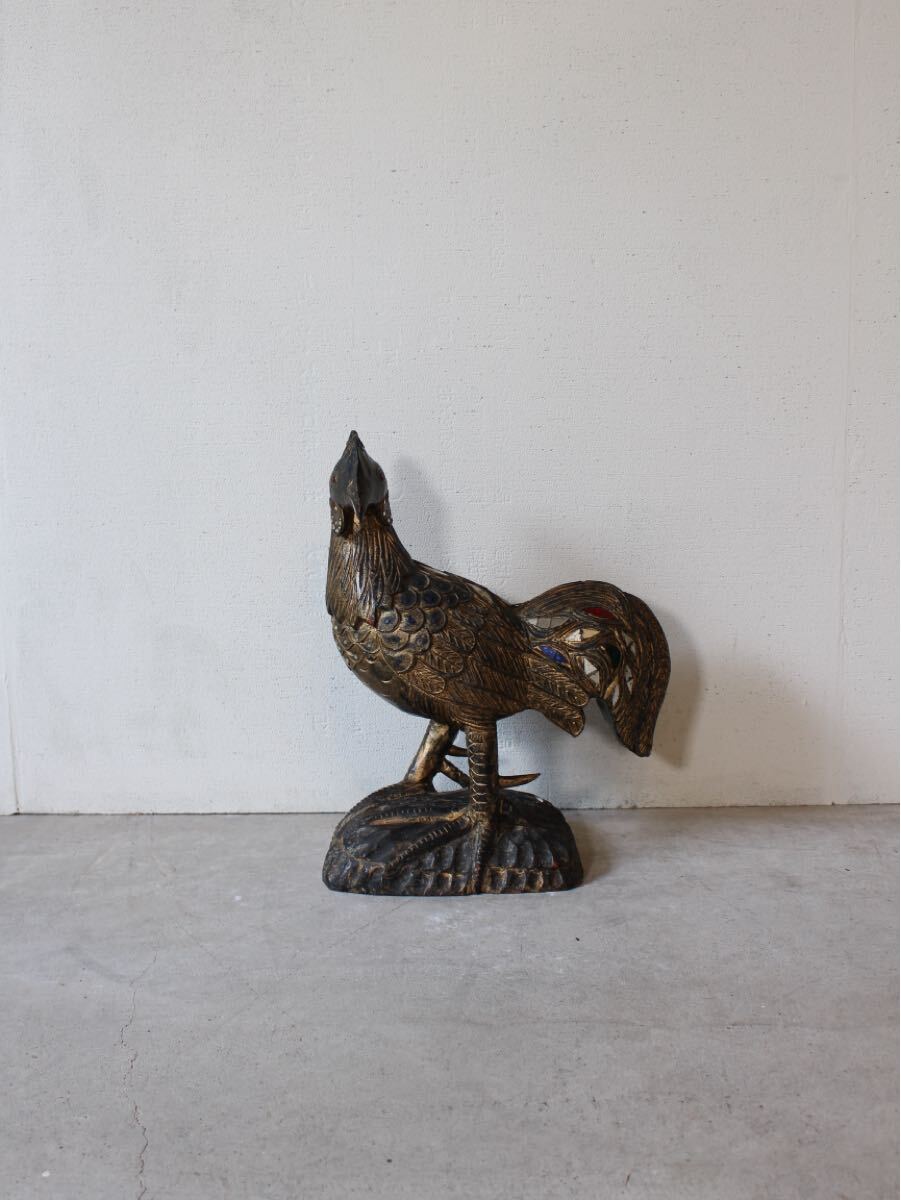 - 木製 鶏のオブジェ 【1】ニワトリ 烏骨鶏 置物 インテリア エスニック雑貨 アジアン雑貨 ディスプレイ 民族 彫刻 タイル 11905