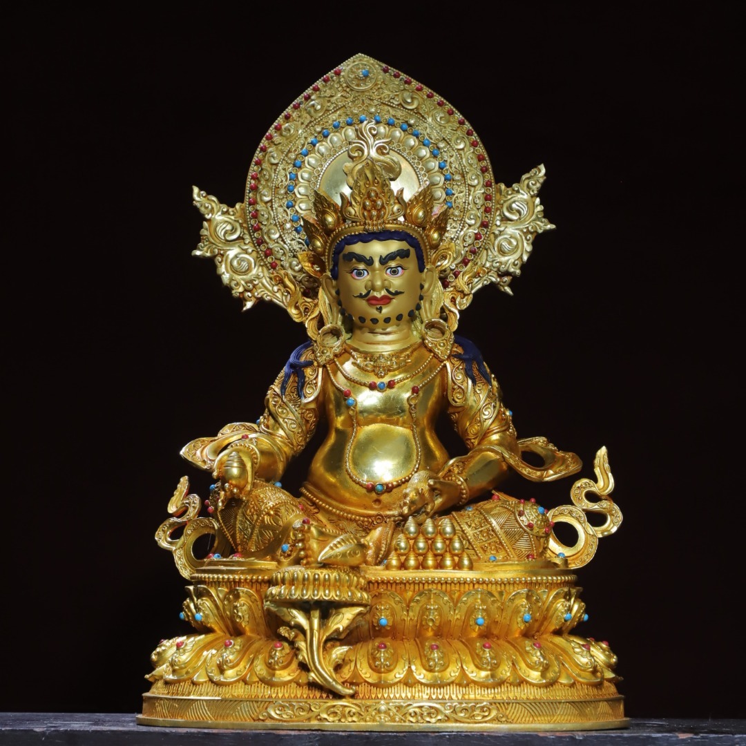 - 唐物 清 銅塗金 画彩【黄財神】仏像 奉納されていた 供養品 銅製品 古美術品 時代物 中国古玩 骨董品 D66