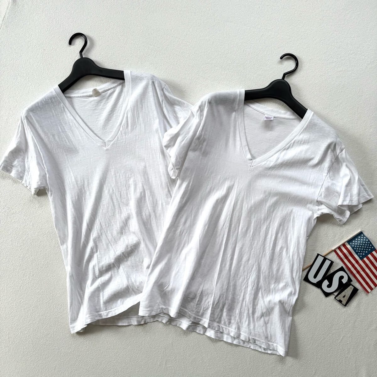- 【美品・2枚セット・M・無地・Vネック】80s ジョッキー jockey ビンテージ Tシャツ USA製 アメリカ製 ヴィンテージ ホワイト 半袖 古着