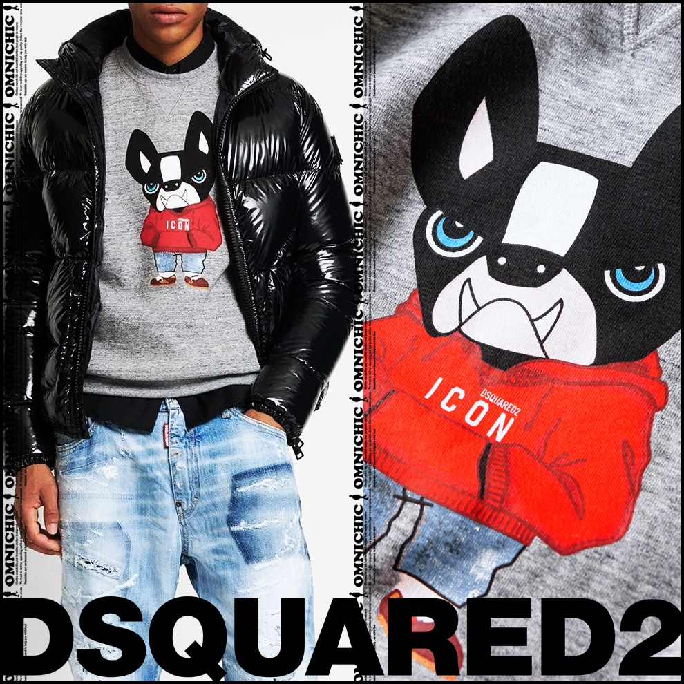- レアモデルICON CIRO■新品【DSQUARED2】ディースクエアード合わせやすさ抜群レッドチロアイコンロゴグレークルーネックスウェットXXL 伊製