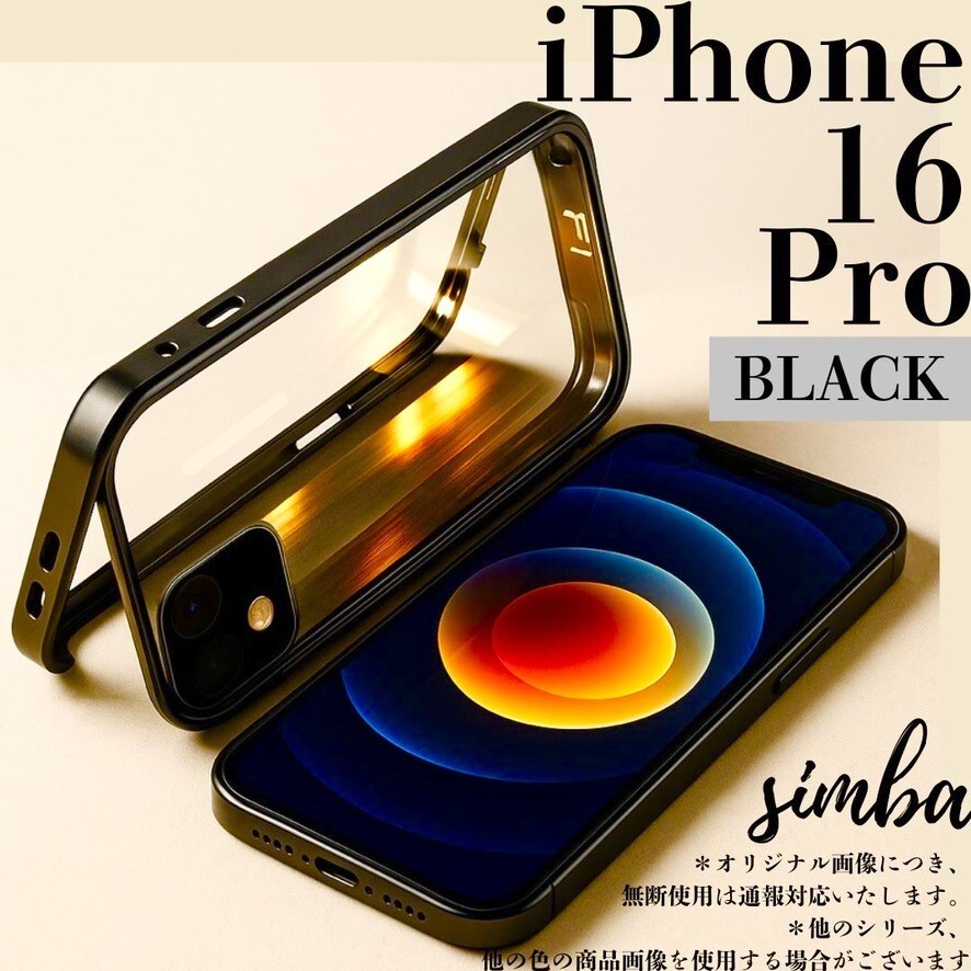 - iPhone 16 Pro ケース ブラック 両面強化ガラス フルカバー 360度保護 高耐久 レンズ保護 おしゃれ 大人 韓国 クリアカバー