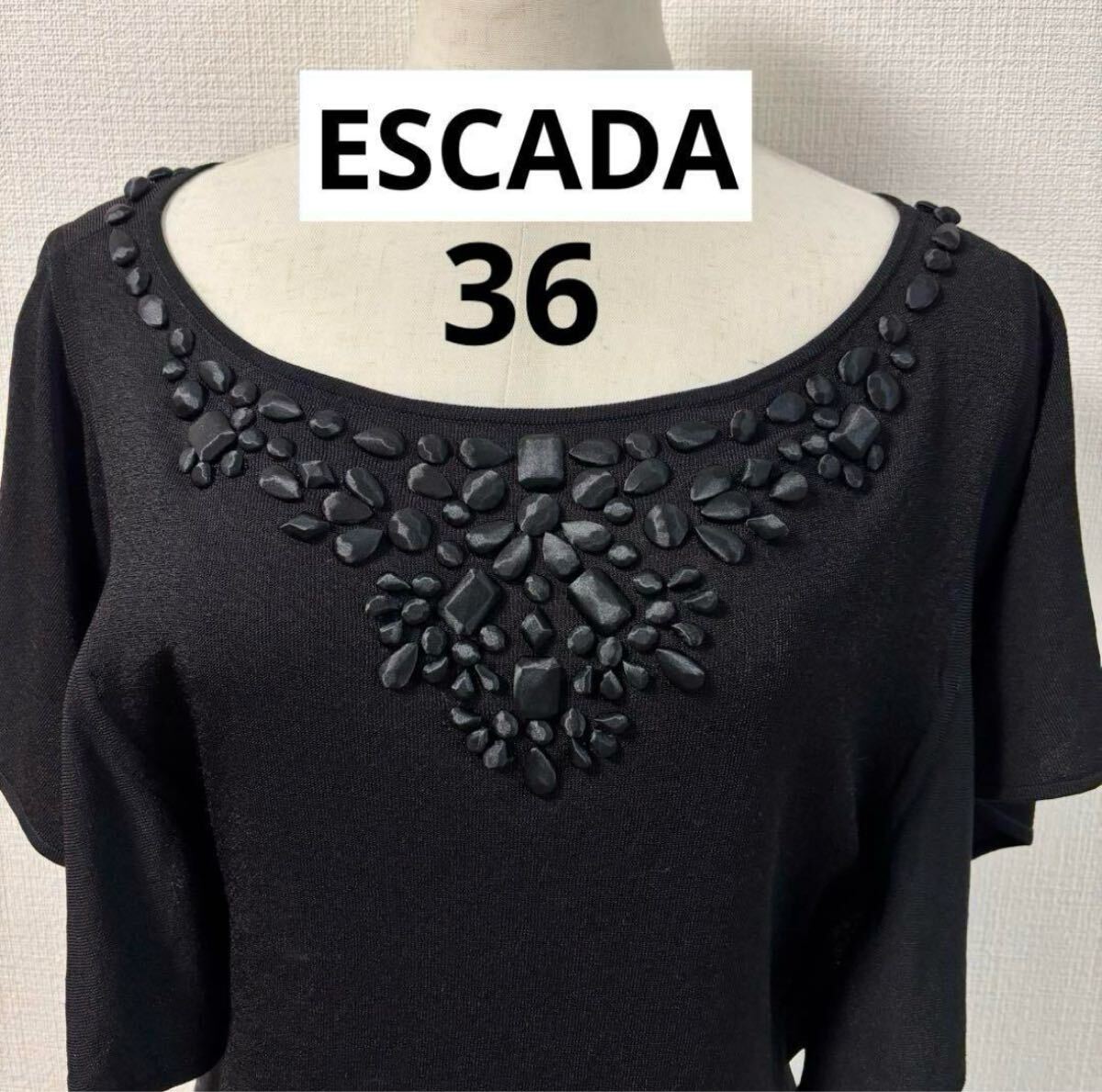 - 美品◇ESCADA◇エスカーダ◇ビジューフリル袖トップス◇BLACK◇36