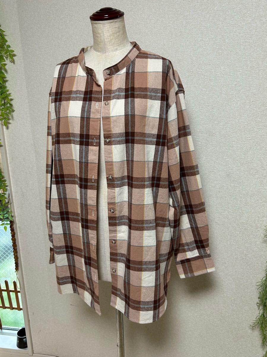 - 3Lサイズ【studio CLIP★スタジオクリップ】チェック柄ノーカラーシャツ