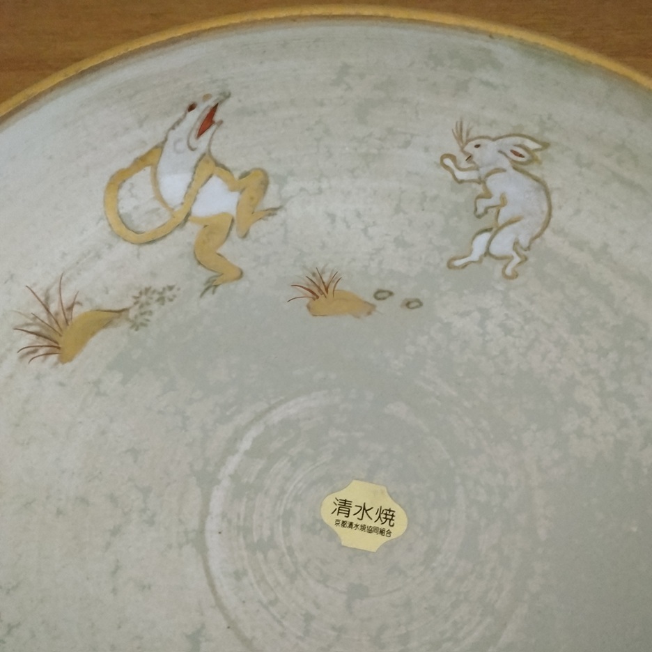 - 平安 斉藤雲楽 中鉢 鳥獣戯画 金彩あり 高山寺 うさぎ かえる ウサギ カエル 兎 蛙 菓子鉢 京焼・清水焼 伝統工芸士