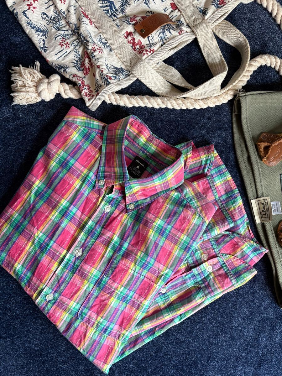 > 超美品 niko and... ニコアンド 高品質コットン素材 お洒落綺麗め マドラスチェック 襟ボタンダウン 長袖シャツ size4(XL)