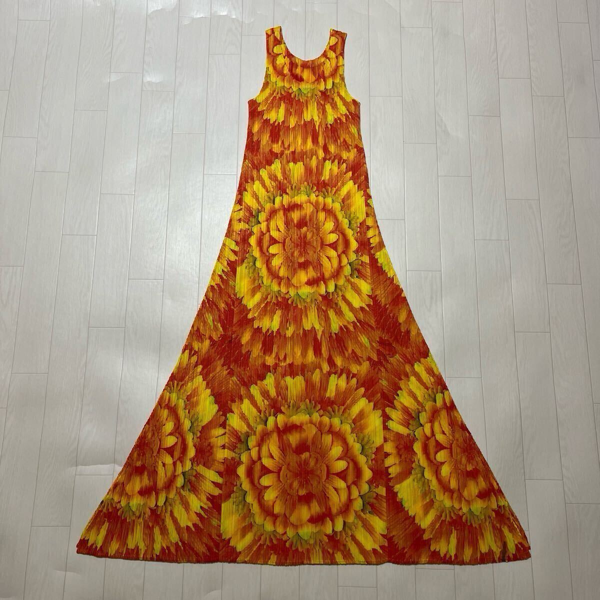 - 美品 PLEATS PLEASE ISSEY MIYAKE プリーツプリーズ イッセイミヤケ ダリア フレア ノースリーブ ロングワンピース 花柄 PP23-JH562