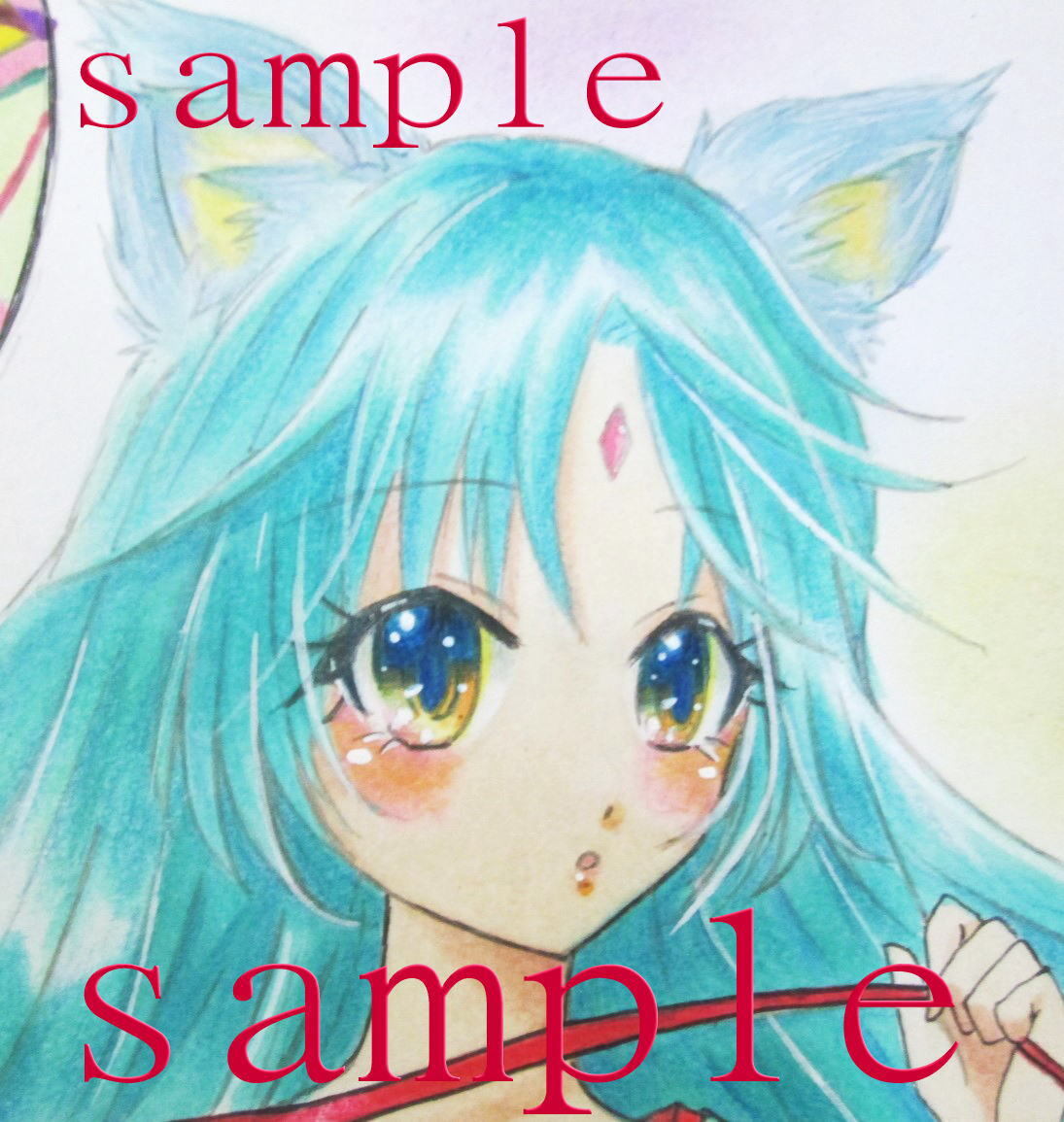 - 手描き オリジナル イラスト ケモミミ 巫女 女の子 色紙 約21×18(㎝) ケモ耳 アナログ 手書き