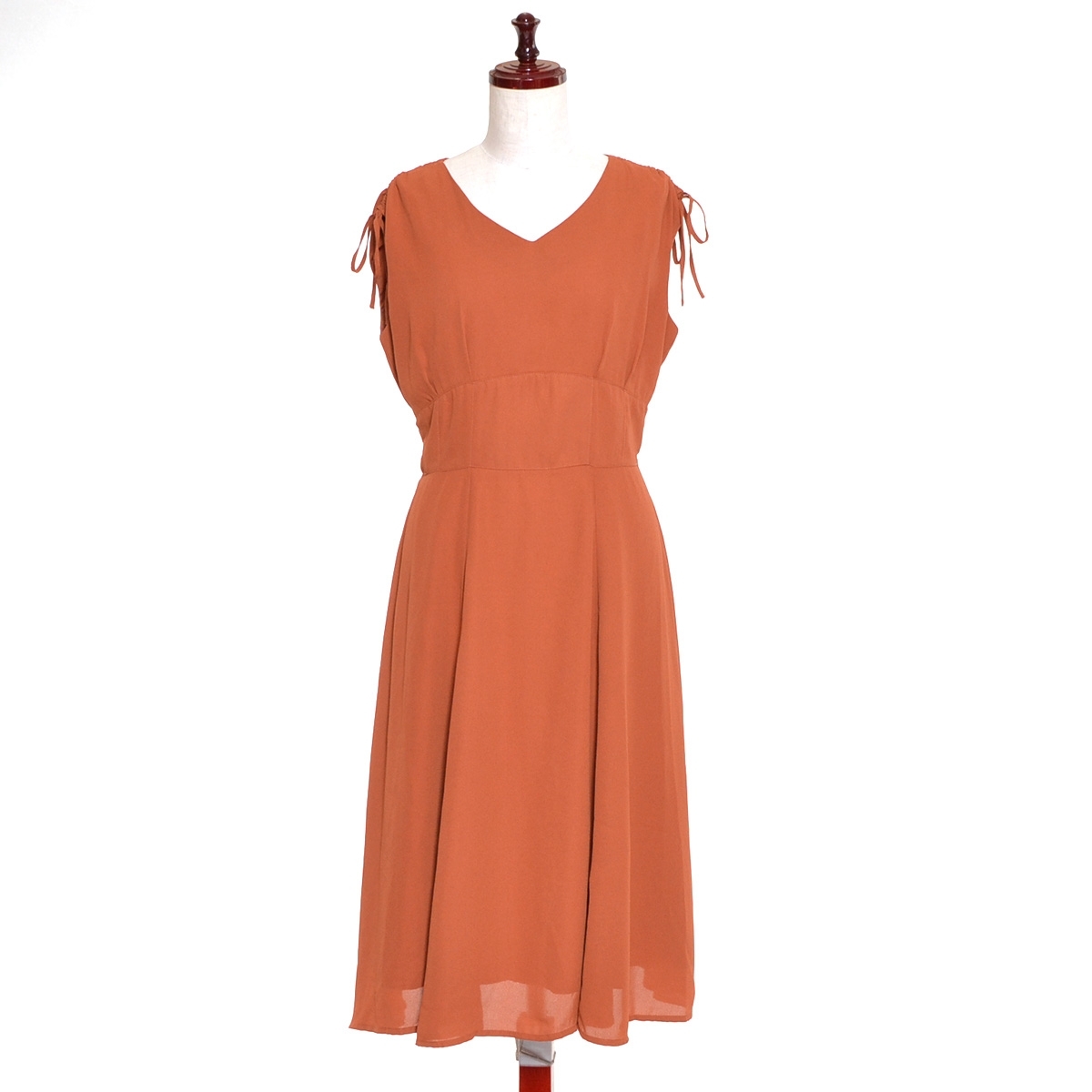 - □494708 MiiA ミーア ○ミディワンピース タックバックシャーリングOP ノースリーブ 膝丈 サイズF レディース オレンジ