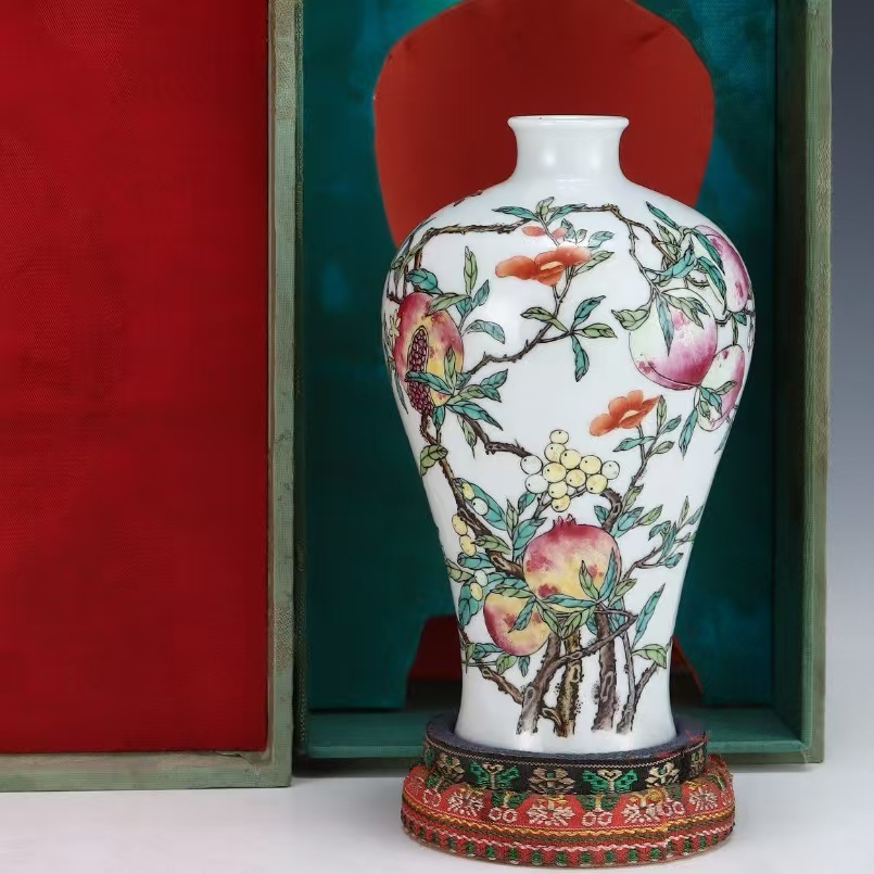 > 磁器 花瓶 秘藏 大清乾隆年制 ピンク寿桃梅瓶 酒器 茶器 唐磁 染付 陶磁器 收蔵品 古美味 時代物 古美術 古置物 希少珍品 中國文玩6.23