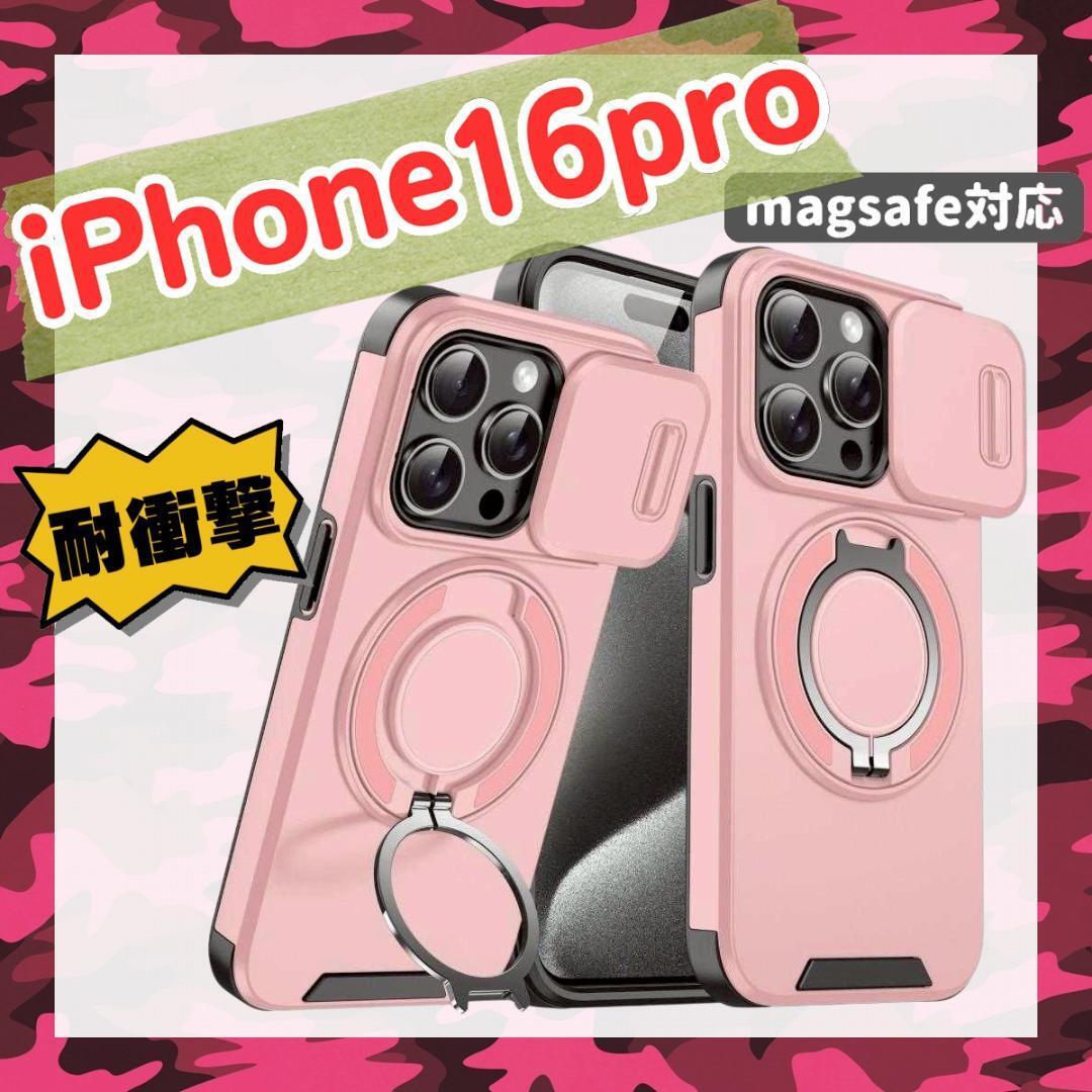 - iPhone16pro ケース 耐衝撃 スライドレンズ保護 米軍MIL規格 ピンク