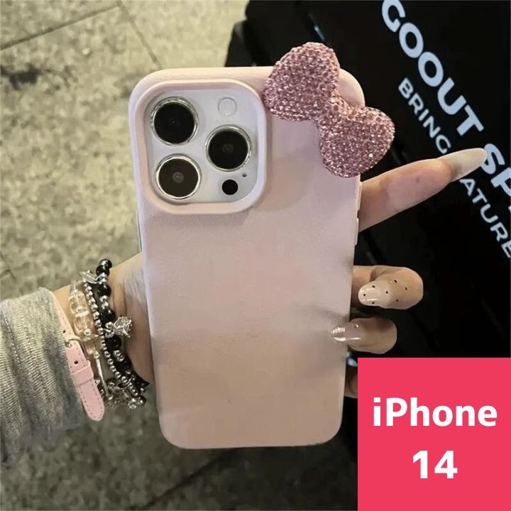 > iPhone14 ケース ラメ リボン 可愛い おしゃれ 韓国 ピンク 人気