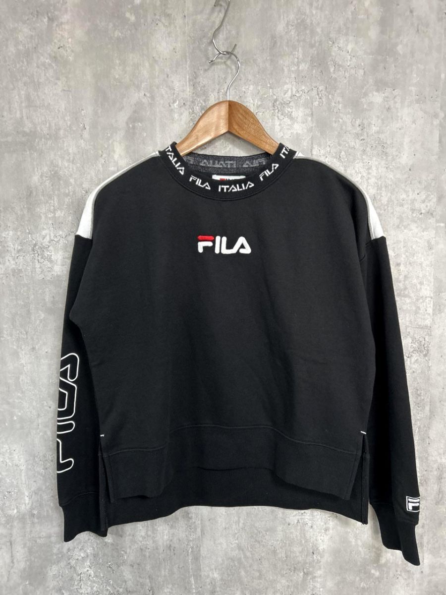- FILA フィラ サイド プリントロゴ 刺繍ロゴ スウェット sizeM/黒 ◆■ レディース