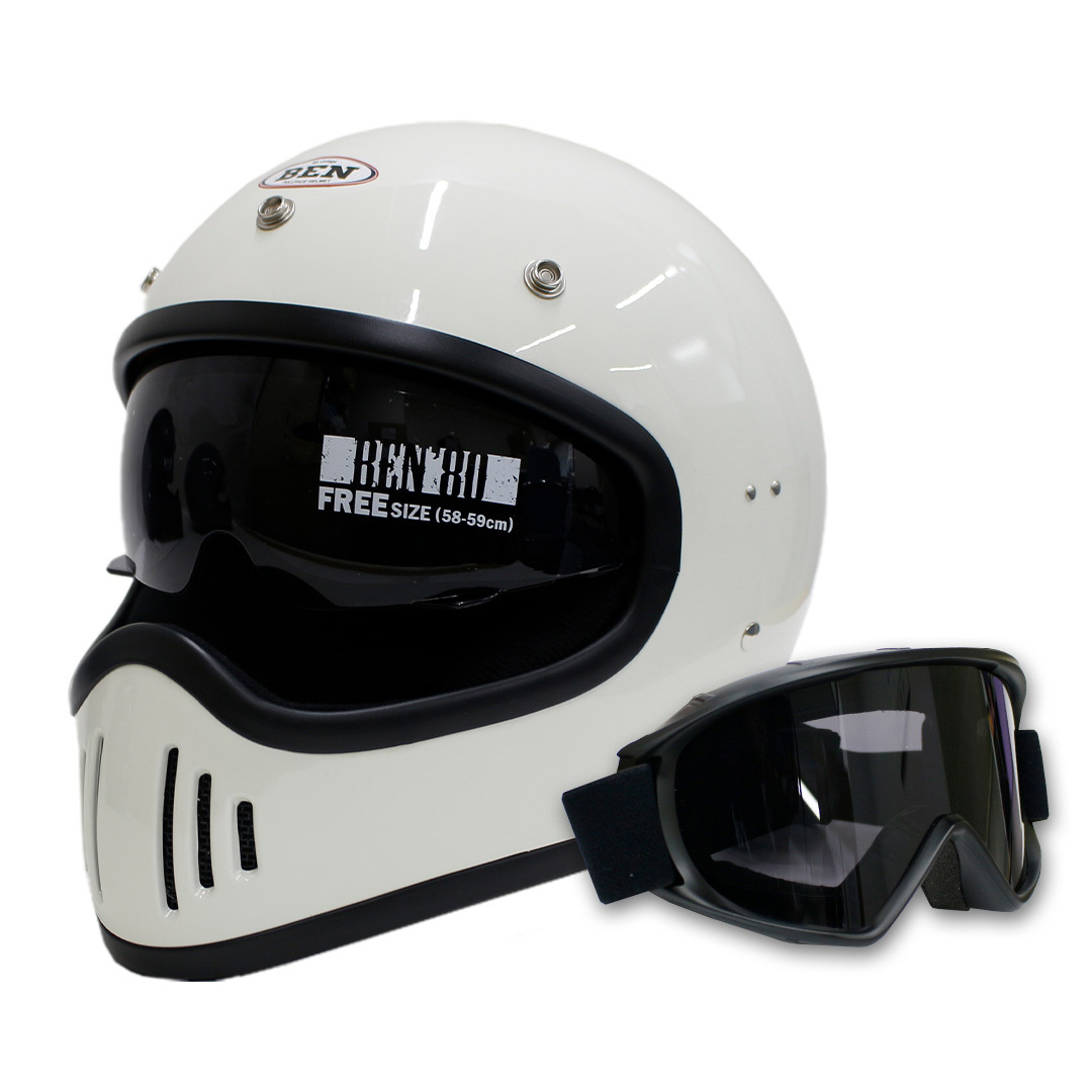 - ヘルメット バイク ゴーグル セット (ホワイト) B-80 BENゴーグル ライト スモーク UVカット おしゃれ フルフェイス