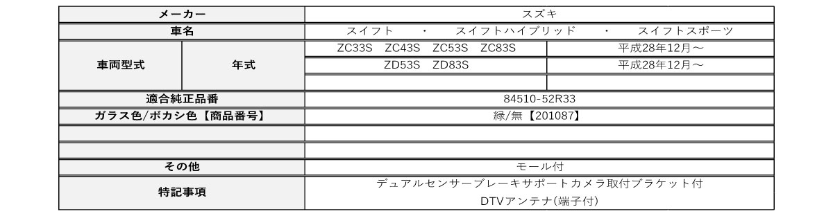 - 4◇新品◇UV&IRカット断熱フロントガラス◇スイフト ZC33S ZC43S ZC53S ZC83S ZD53S ZD83S カメラ(DSBS) DTVアンテナ モール付 201087