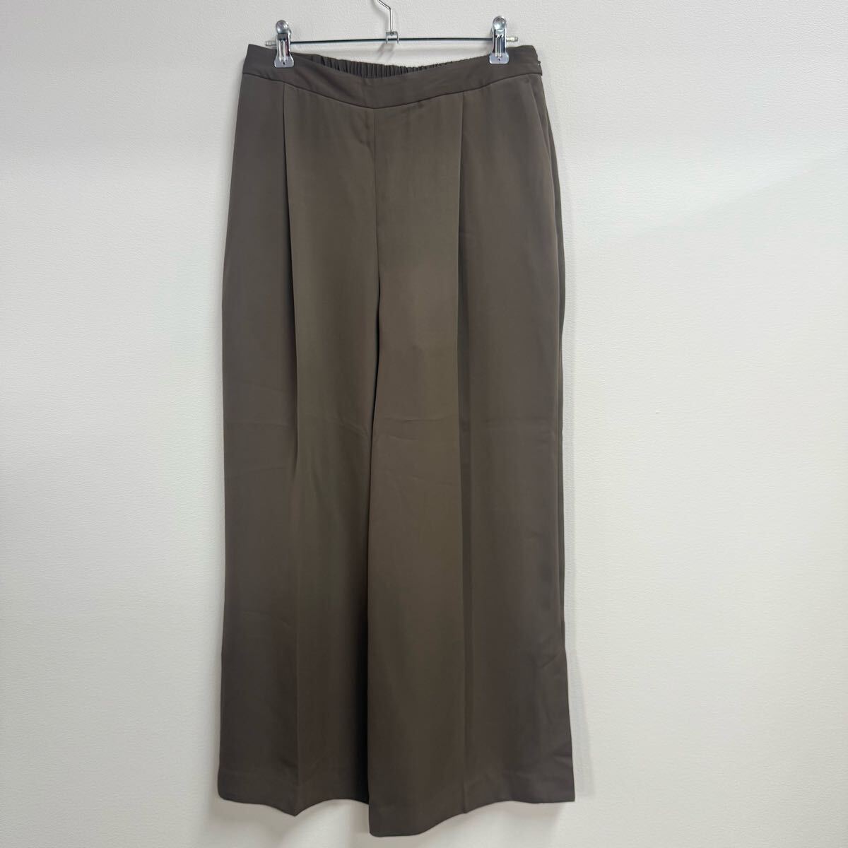 - ♪ ロートレアモン LAUTREAMONT カーキ ブラウン系 スリット センタープレス スラックス 40 ウエストゴム
