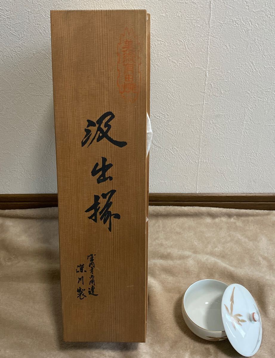 - 陣茶碗揃 深川製磁 宮内庁御用達 5客汲出蓋付き 湯呑み 白花蘭 有田焼