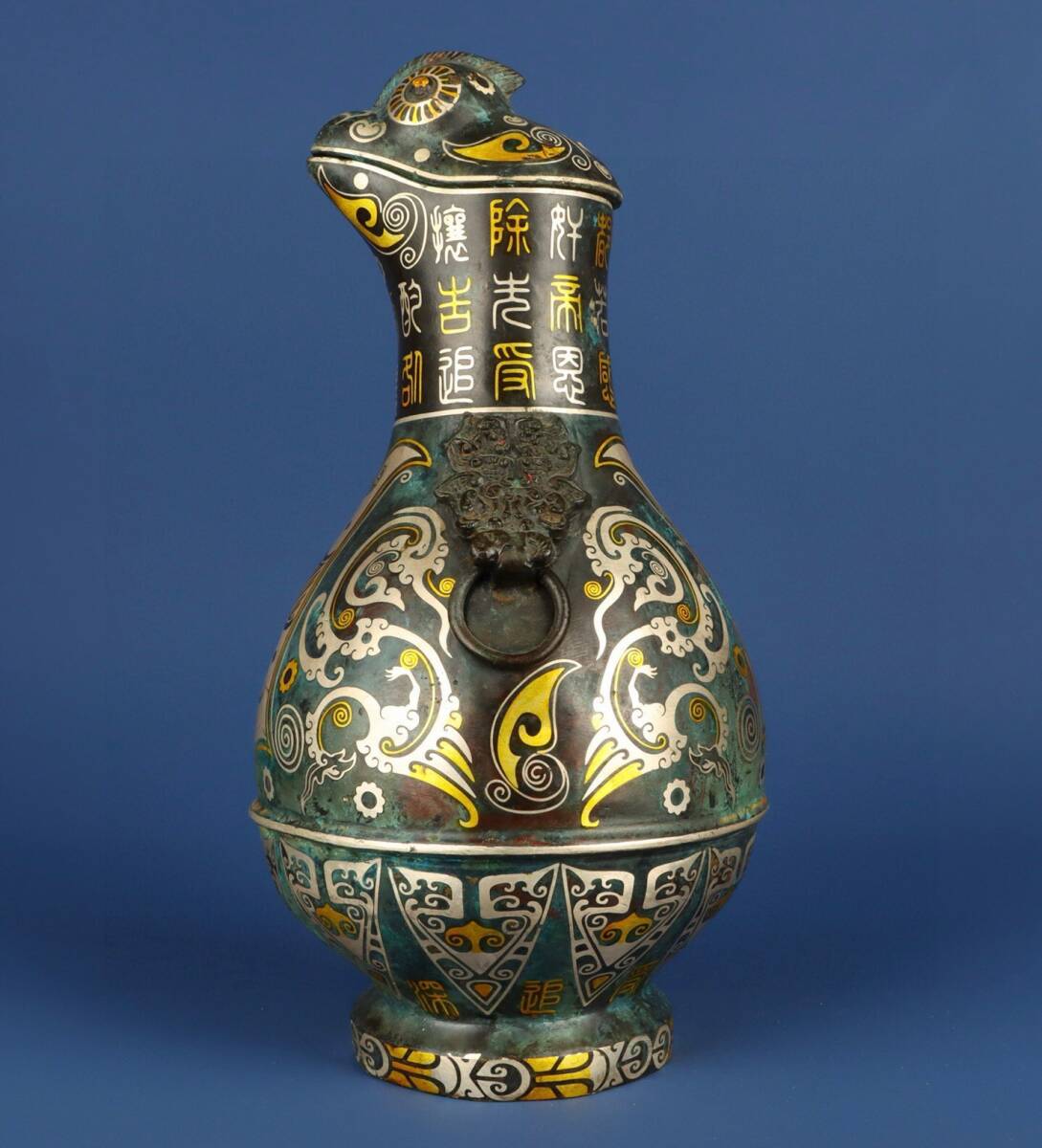 - 蔵友旧蔵出 漢 青銅作 錯金銀 鳥蓋瓶 希少珍品 貴重品 置物 古賞物 中国古玩 中国古美術品 館蔵品