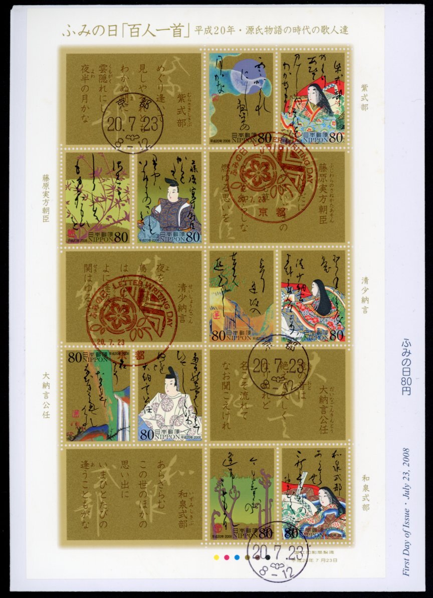 - z82 【FDC】平成20年ふみの日「百人一首」[京都/20.7.23/JPS]