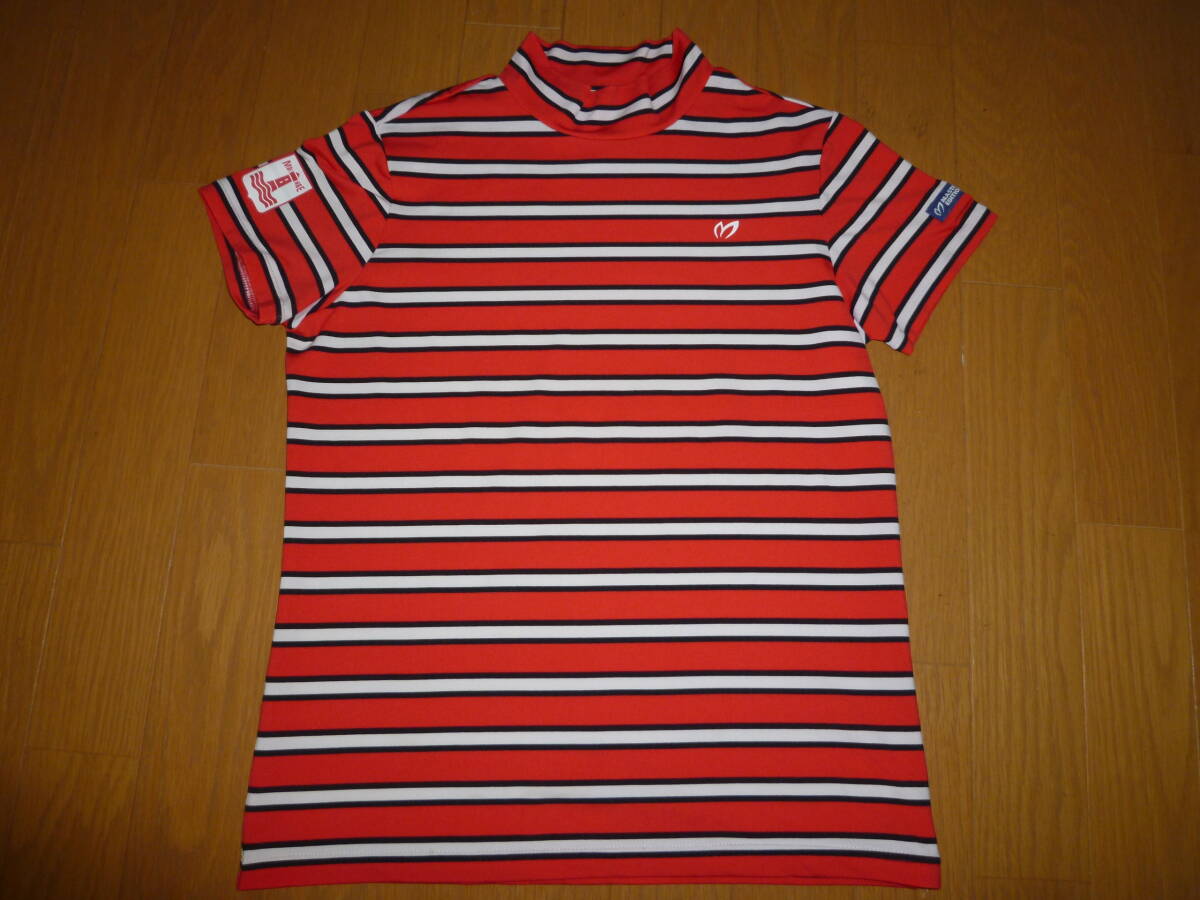 - 美品 マスターバニー パーリーゲイツ レディース ストレッチ 半袖ハイネックシャツ 159-7167500 ボーダー O TSI
