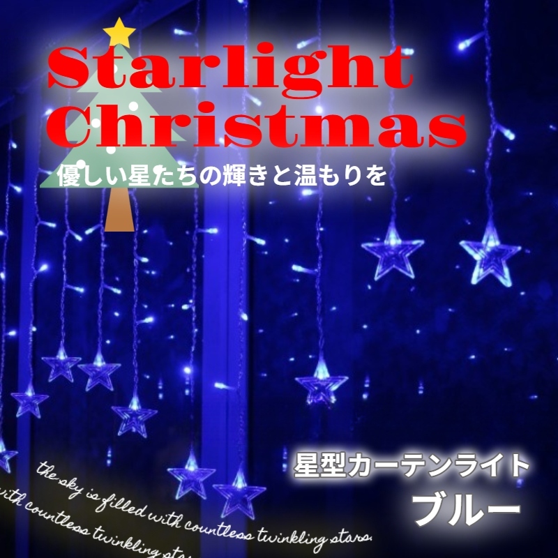 - 【星型】イルミネーション LED カーテン ライト 防水 ブルー