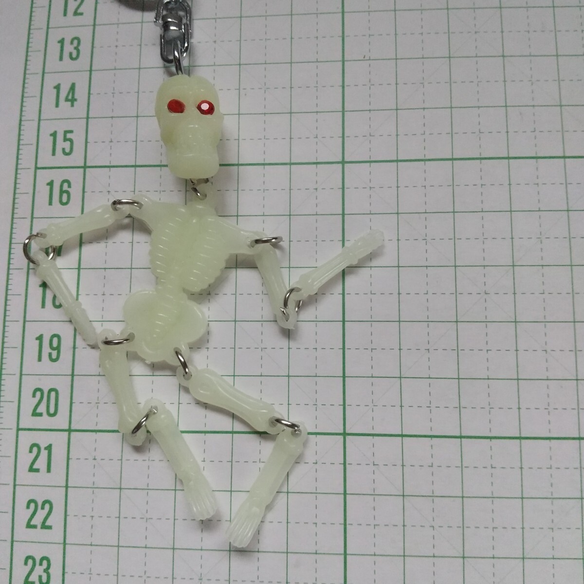 - ガイコツ キーホルダー 夜光 蓄光 キーリング ドクロ 髑髏 グローインザダーク 赤