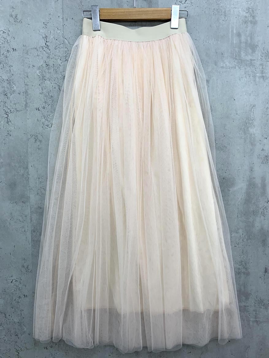 > ゆうパケットOK 新品 miniministore ミニミニストア チュール フレア ロング スカート sizeL/ピンクベージュ ■■ ☆ ffc3 レディース